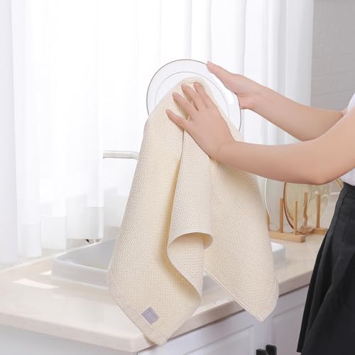 Homaxy 100% Cotton Waffle Weave Kitchen Towels, 3-Pack Ultra Soft Absorbent Dish Towels, Quick Drying Cleaning Towels, 13 x 28 Inches, Beige